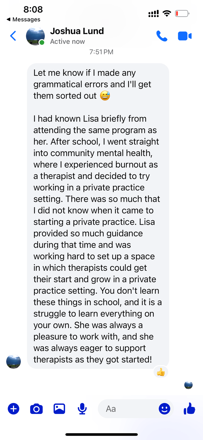 As a counselor, supervisor, and consultant, I specialize in guiding therapists to reduce burnout, grow their practices with confidence, and create the balance they deserve.